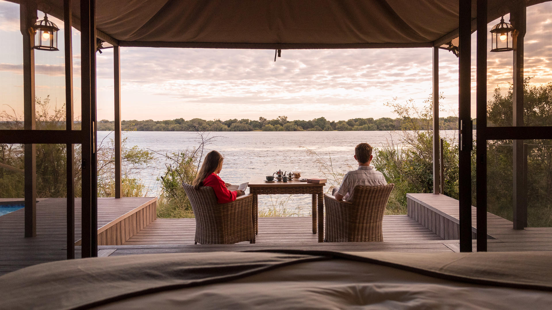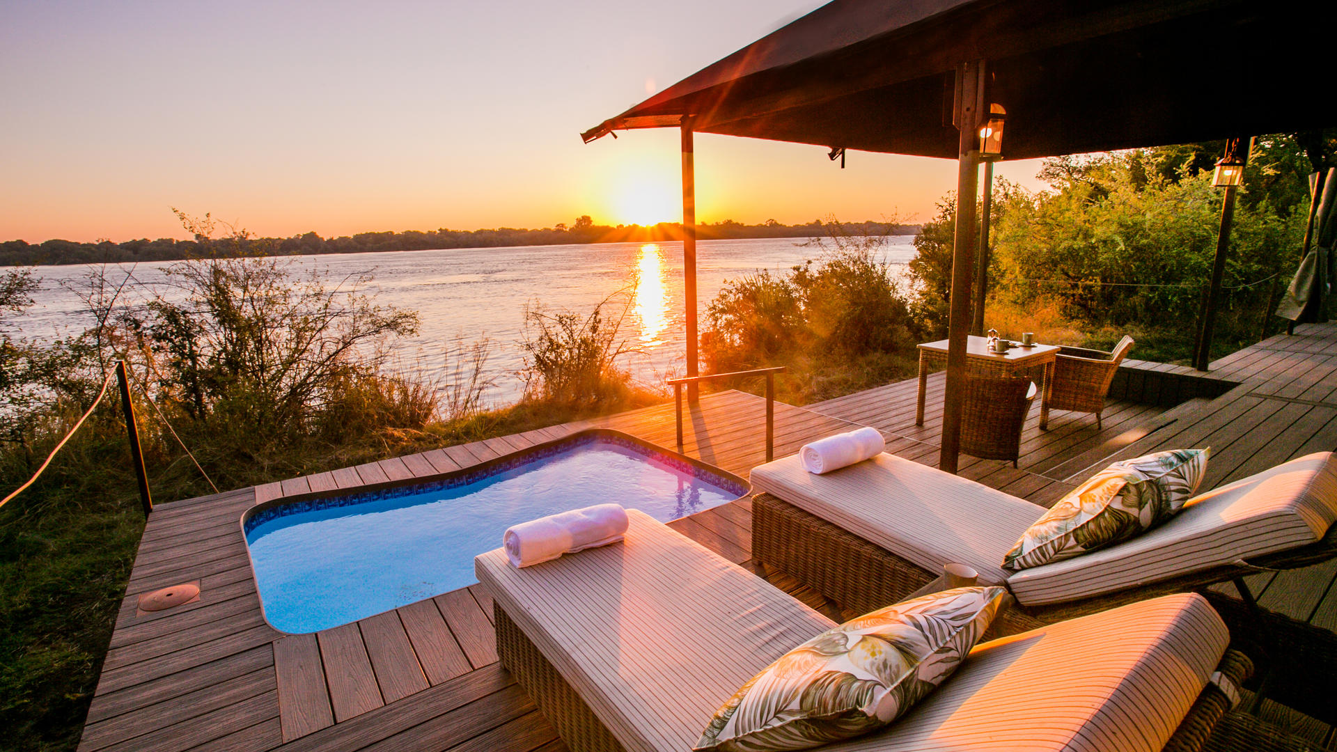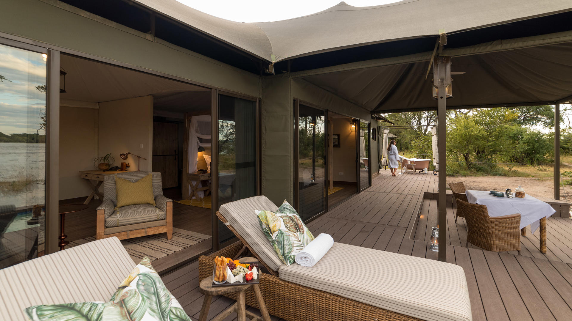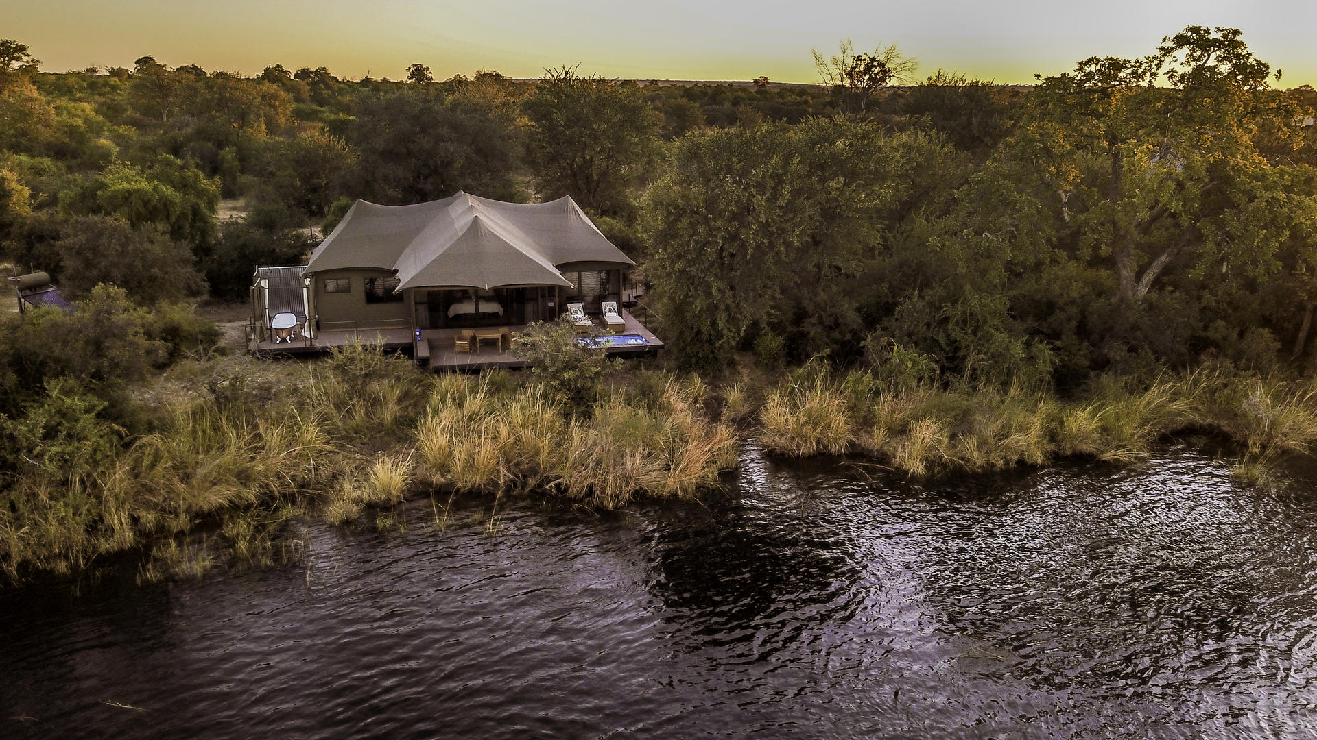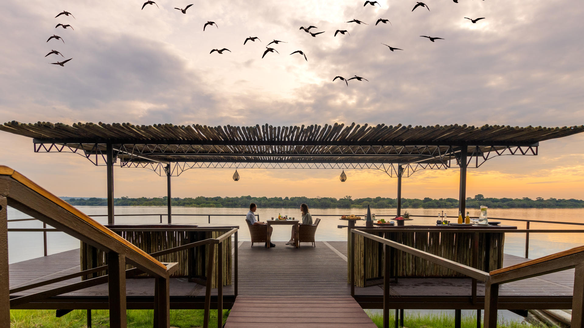 Fly till den ultimata lyxiga reträtten på Old Drift Lodge, en fristad inbäddat i hjärtat av Zambezi National Park, strax uppströms från de världsberömda Victoria Falls. Ligger på stranden av den mäktiga Zambezi floden, erbjuder lodge en orörd vildmark som sträcker sig över 56 000 hektar naturlig skönhet, full av ett överflöd av vilda djur. Oavsett om det är en spelkörning, flodkryssning, eller en guidad vandringssafari, gästerna kan utforska parken på väg, flod, eller till fots.