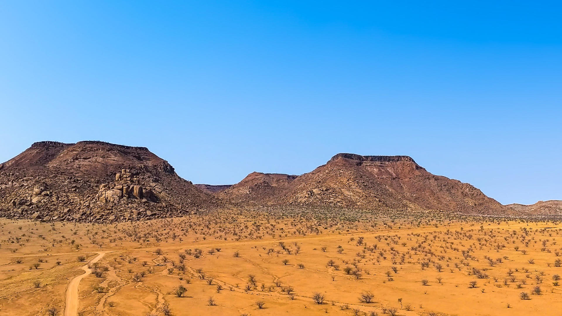 Under förmiddagen åker ni på en naturskön resa genom orörda vildmarksområden och beger er mot Brandberg, Namibias högsta berg. Ni åker ner i Ugabs torra flodbädd och stannar till för att avnjuta en lätt picknick-lunch under ett av de majestätiska kamelthornsträden. När ni åker tillbaka till ert camp, längs den slingrande floden kanske ni stöter på den skygga ökenelefanten som strövar omkring i Damaralandets torra flodbäddar och livnär sig på de näringsrika baljorna från träden som kantar flodstranden. När ni kommer tillbaka har ni tillräckligt med tid kvar för att njuta av landskapet eller följa en av vandringslederna.