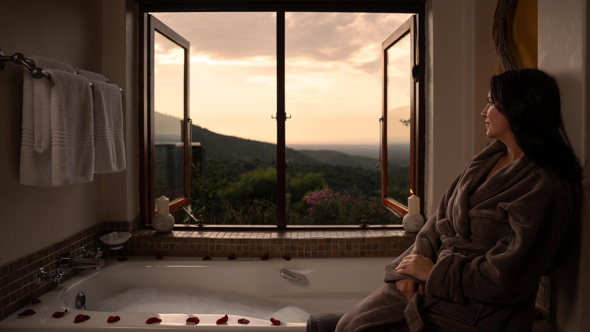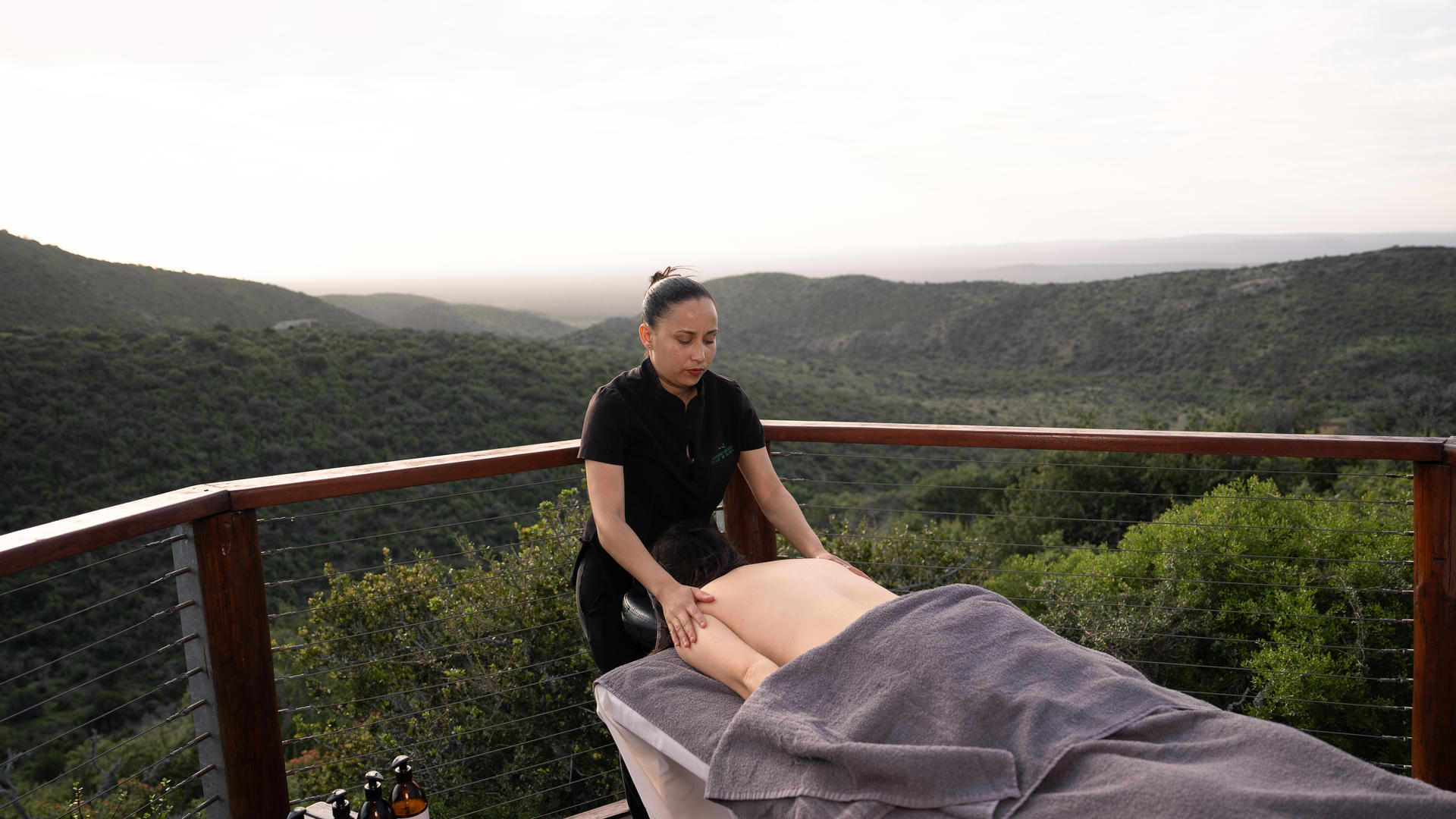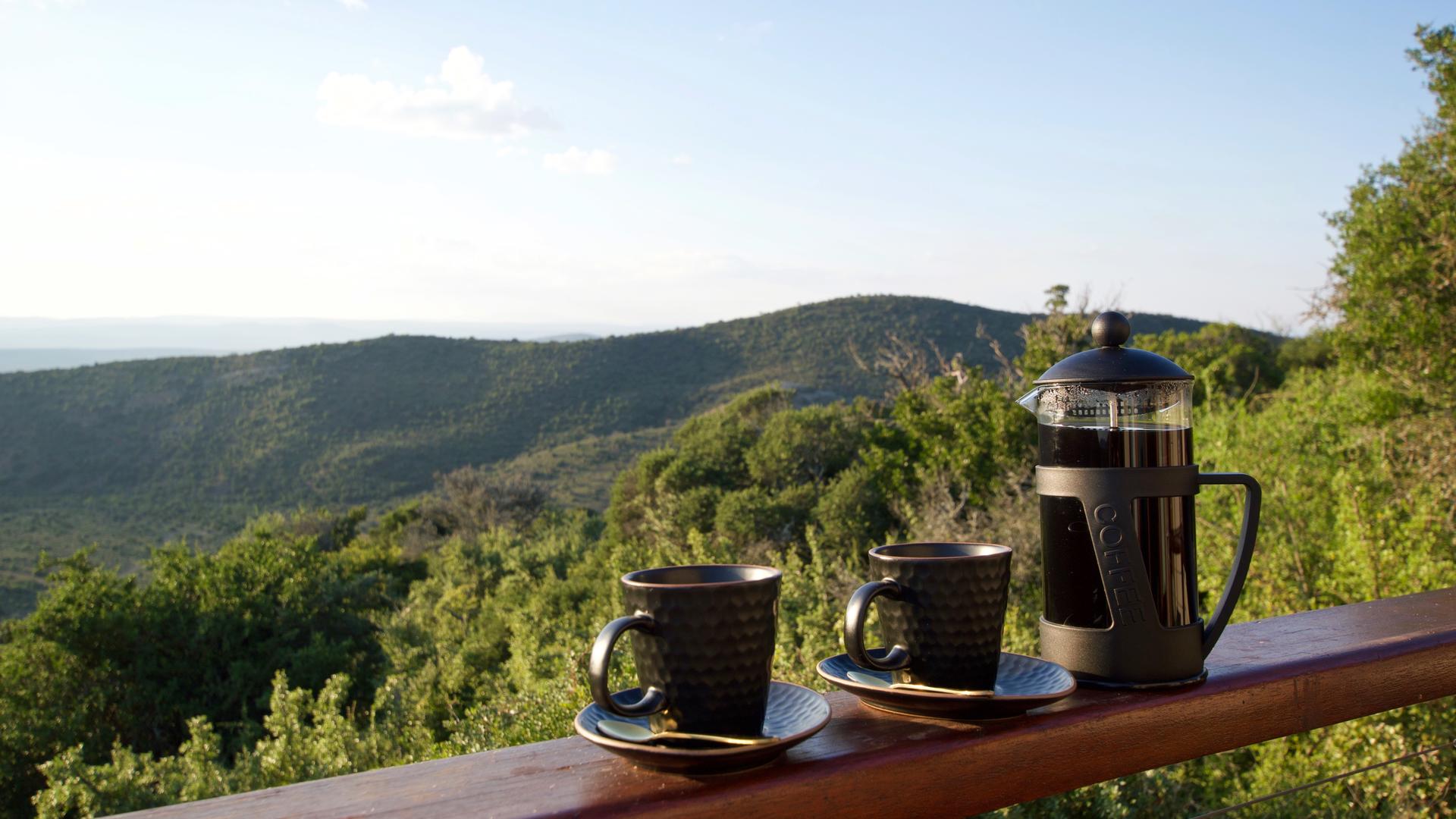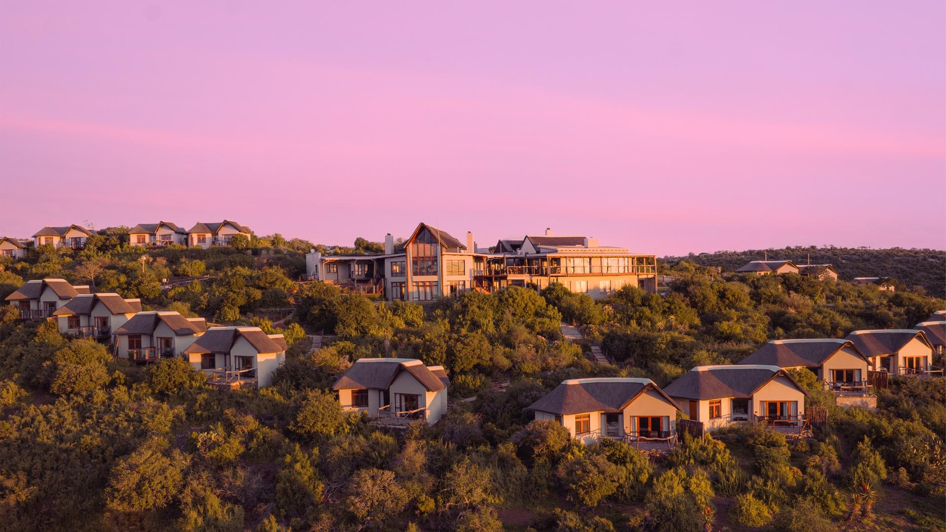 Kuzuko har 24 lyxiga halmtäckta chalets designade i en Karoo chic-stil, alla placerade för att maximera både utsikt och avskildhet. Varje 33 m² stora chalet består av ett öppet sovrum och vardagsrumsområde som kan ordnas med antingen två enkelsängar eller en dubbelsäng. Vardagsrumsdelen leder ut till din privata terrass, och det finns ett separat badrum med toalett, dusch och ett badkar med spektakulär utsikt. Ytterligare bekvämligheter inkluderar en te- och kaffestation, minibar som kan fyllas på begäran, värdeskåp, garderob, hårtork och gratis Wi-Fi. Fem av våra chalets är familjevänliga med en bäddsoffa som kan rymma två barn under 12 år eller ett barn över 13 år. Tre av våra chalets är fullt tillgängliga.