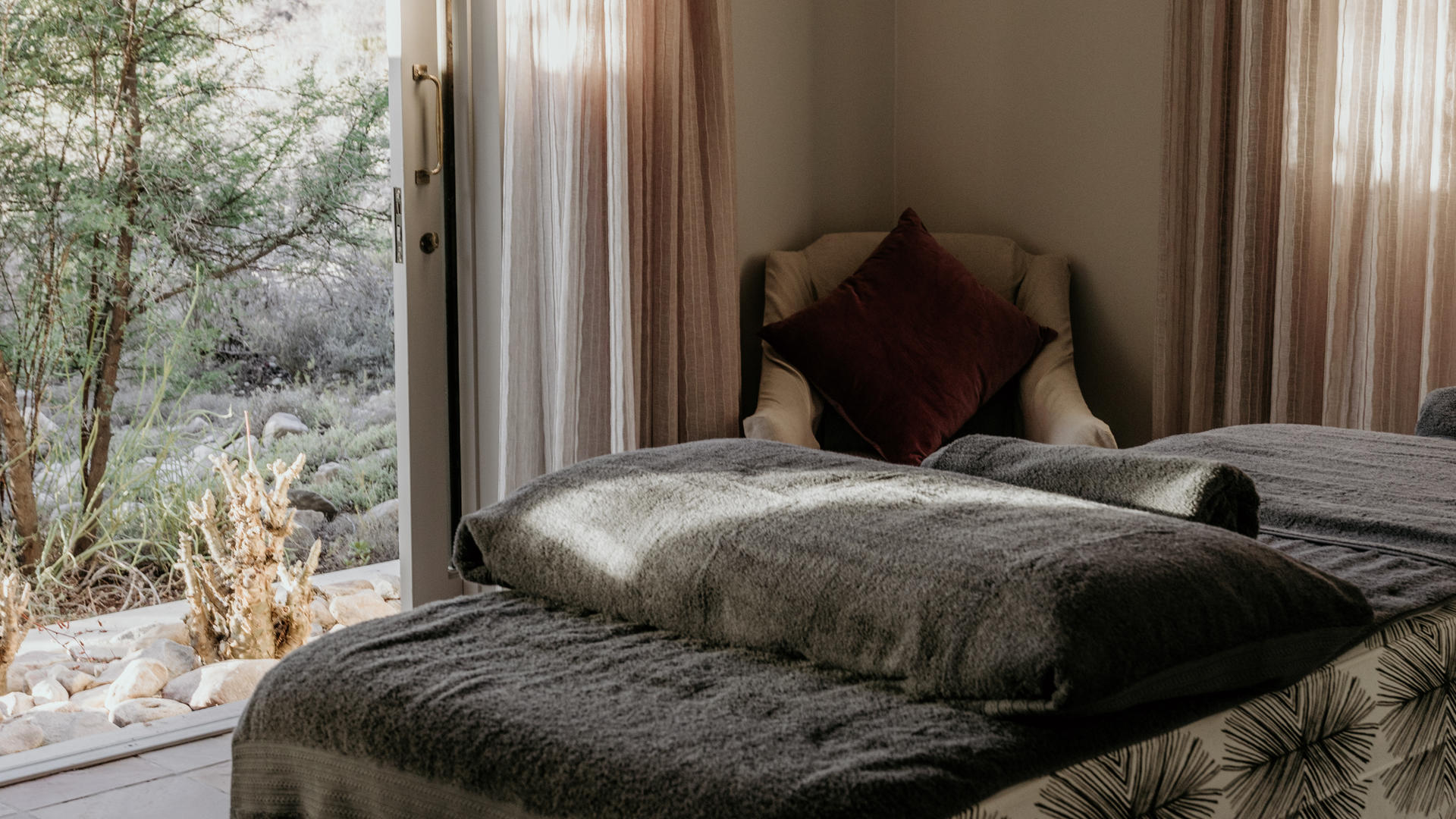 Tilney Manor at Sanbona Wildlife Reserve består av 3 separata enheter inklusive 6 stora sviter med öppen planlösning, var och en vetter mot privata verandor med fantastisk utsikt över böljande berg och slätter. Denna frodiga oasmiljö på Tilney Manor är omgiven av noggrant anlagda inhemska trädgårdar.